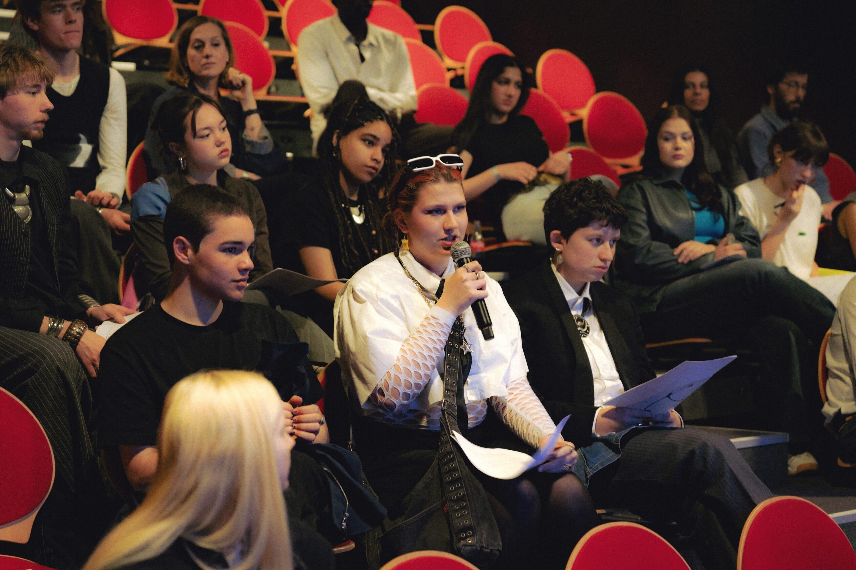 The twenty selected young people were invited to a workshop week at DE SINGEL during the spring break. Guided by fashion experts and professionals, they created their own unique looks by upcycling deadstock fabrics. With this initiative, MoMu aims to not only help them develop their creative talents but also raise awareness about the environmental impact of fashion.